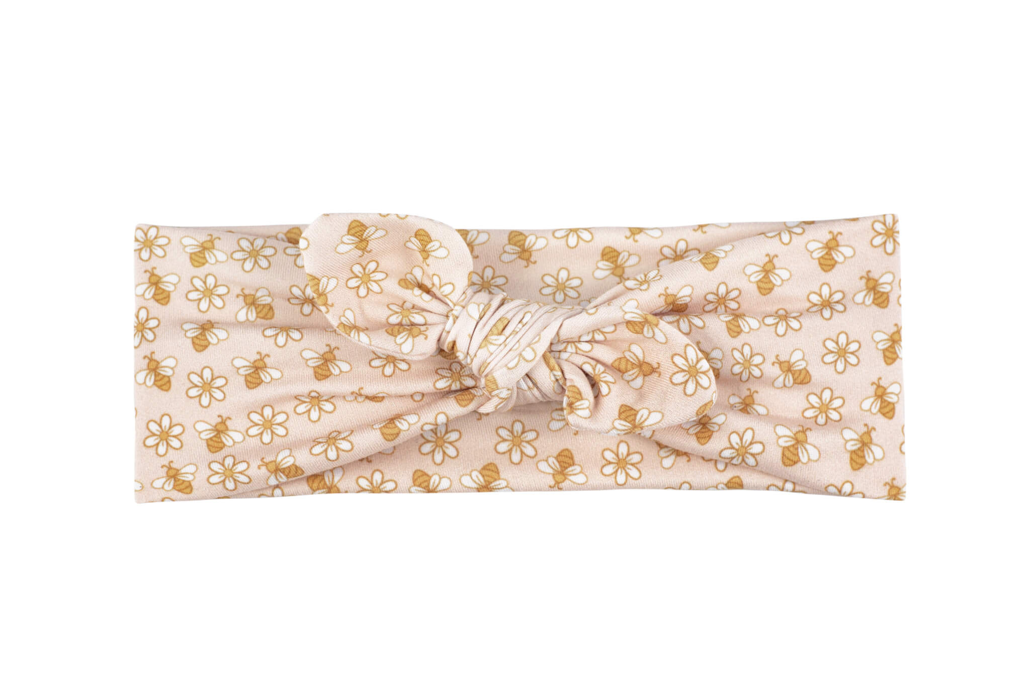 Our number one seller, the top knot headband, is now available in an exclusively designed bee and flower print. It is easy to dress up, or keep casual. From playground to downtime, this knotted headband will make your little girl more fashionable and more beautiful. Designed with busy mamas in mind, this stretchy and pre-tied headband allows for it to be slipped on easily, hassle-free. It's also perfect at keeping any hair that your baby might have out of their face.