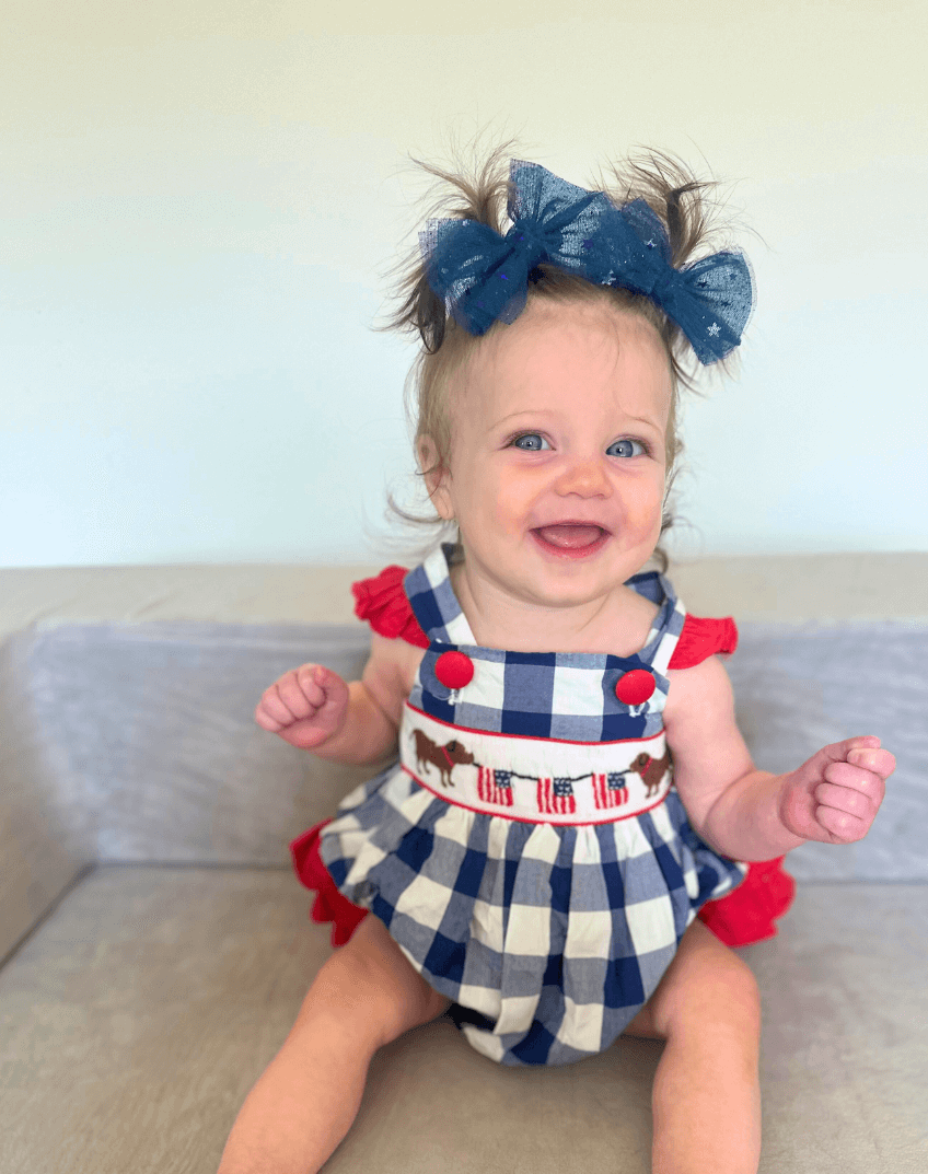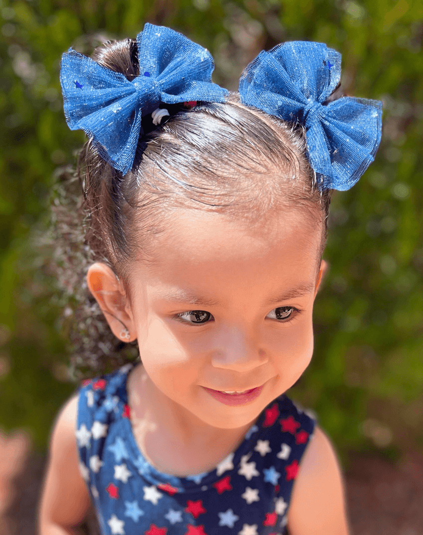 Imagine putting the final touch to your toddler's outfit with our charming Blue Stars Tulle Bow Clips. Delicately crafted for your baby's comfort and style, this clip adds a touch of festive glamour to your little one's look.