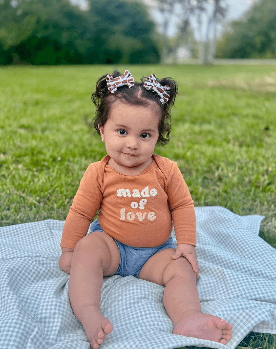 Imagine putting the final touch to your toddler's outfit with our All Smiles bow clips made from buttery soft stretchy fabric.