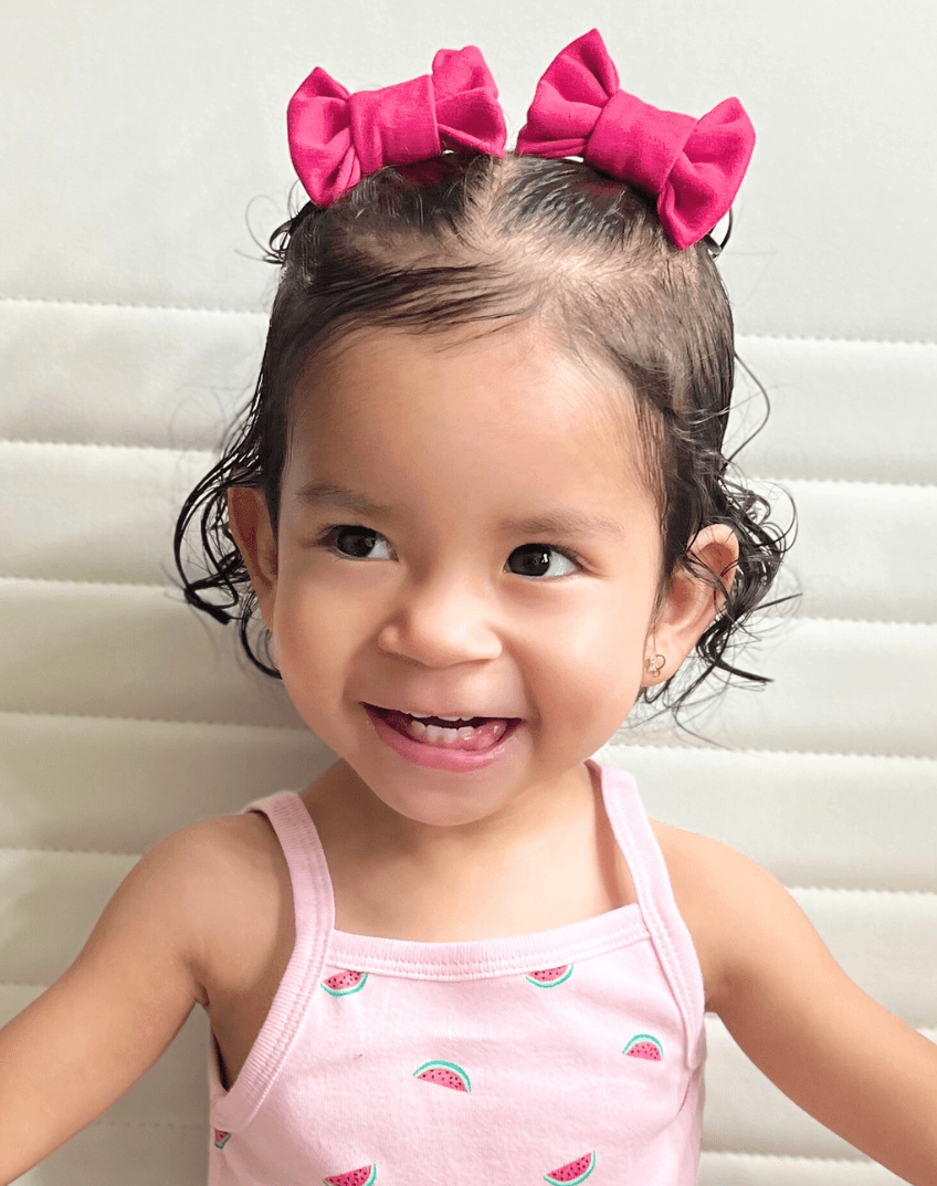 Imagine putting the final touch to your toddler's outfit with our Fuchsia Bow Clips made from buttery soft stretchy fabric.