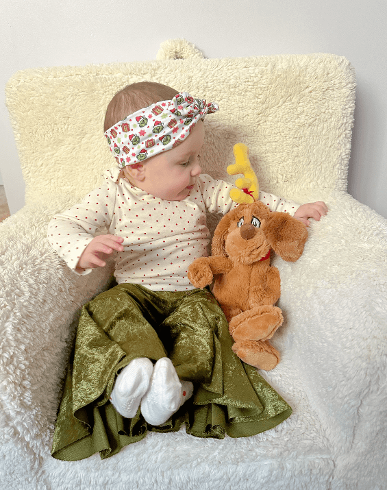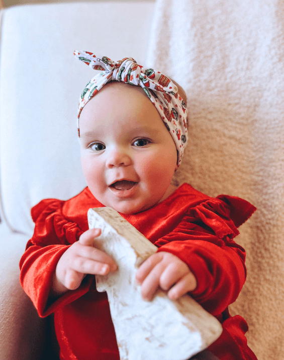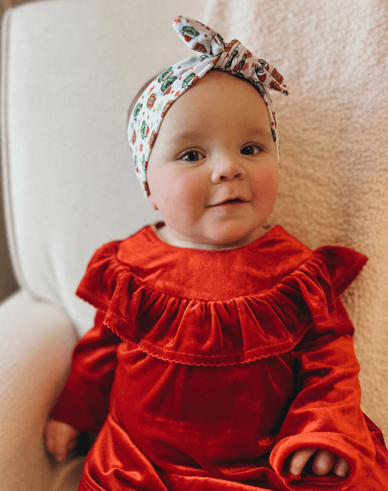 Our handmade headband will elevate your little one's outfit this holiday season having your baby look even more adorable in pictures. It's the perfect hair accessory for family photo shoots or capturing that perfect picture for your little one's monthly birthday celebration to post on social media.