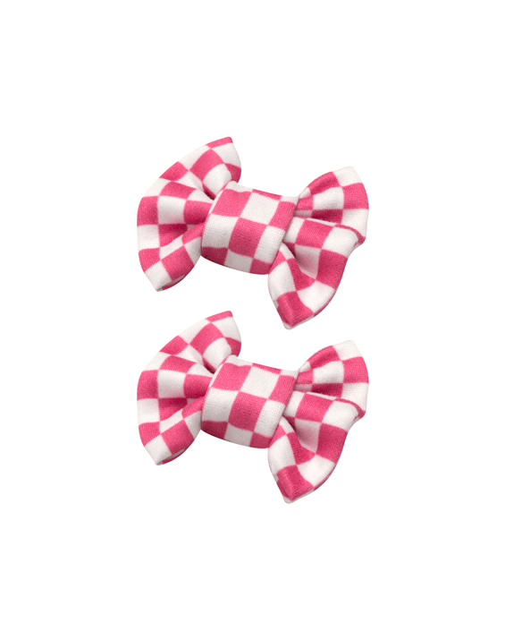 Imagine putting the final touch to your toddler's outfit with our Hot Pink Checkered bow clips made from buttery soft stretchy fabric.