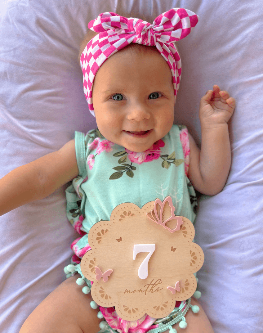 Our handmade headband will elevate your little one's outfit having your baby look even more adorable in pictures. It's the perfect hair accessory for family photo shoots or capturing that perfect picture for your little one's monthly birthday celebration to post on social media.