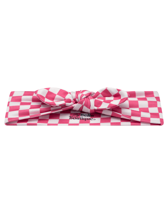 Our exclusively designed Hot Pink Checkered print headband is easy to dress up, or keep casual. From playground to downtime, this knotted headband will make your little girl more fashionable and more beautiful. Designed with busy mamas in mind, this stretchy and pre-tied headband allows for it to be slipped on easily, hassle-free. It's also perfect at keeping any hair that your baby might have out of their face.