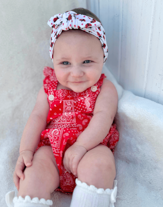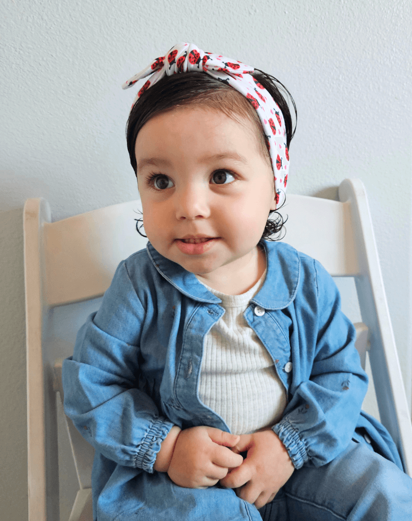 Our exclusively designed Ladybug print headband is easy to dress up, or keep casual. From playground to downtime, this knotted headband will make your little girl more fashionable and more beautiful. Designed with busy mamas in mind, this stretchy and pre-tied headband allows for it to be slipped on easily, hassle-free. It's also perfect at keeping any hair that your baby might have out of their face.