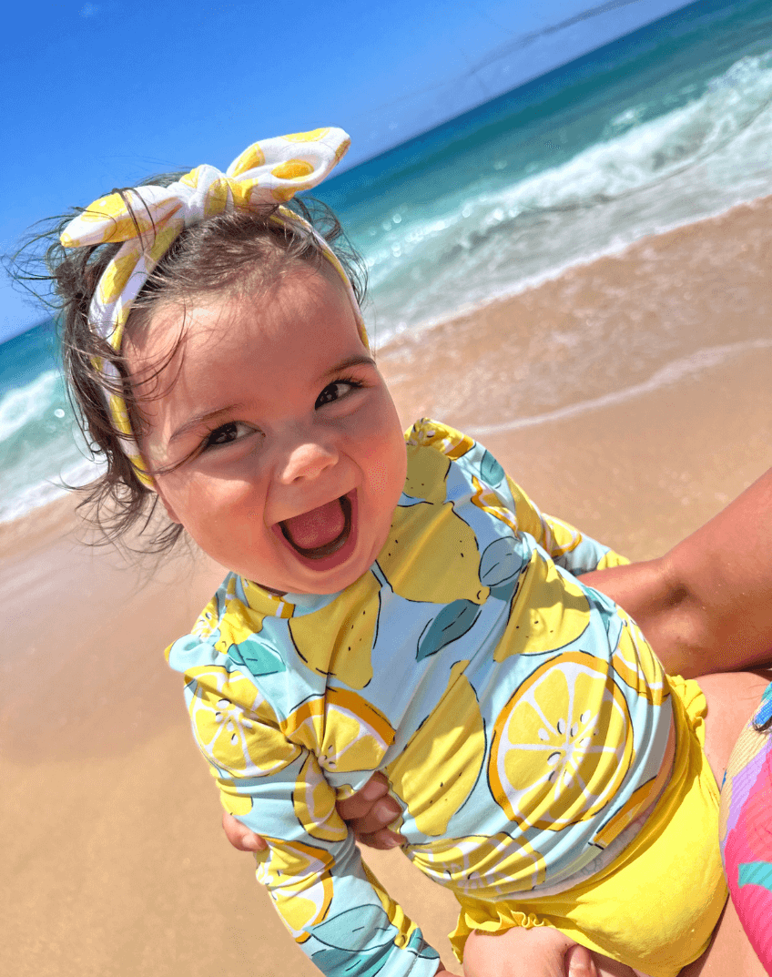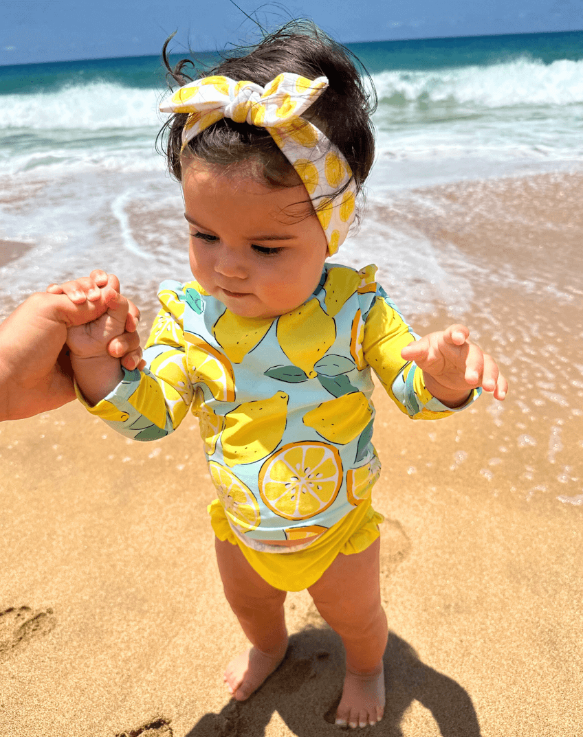 Our number one seller, the top knot headband, is now available in an exclusively designed lemon print. It is easy to dress up, or keep casual. From playground to downtime, this knotted headband will make your little girl more fashionable and more beautiful. Designed with busy mamas in mind, this stretchy and pre-tied headband allows for it to be slipped on easily, hassle-free. It's also perfect at keeping any hair that your baby might have out of their face.
