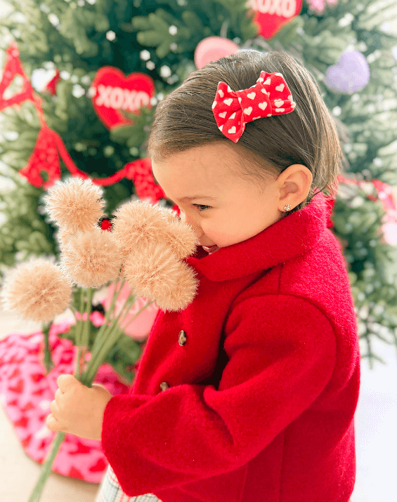 Imagine putting the final touch to your toddler's outfit with our Lovestruck Bow Clips handmade from buttery soft stretchy fabric.
