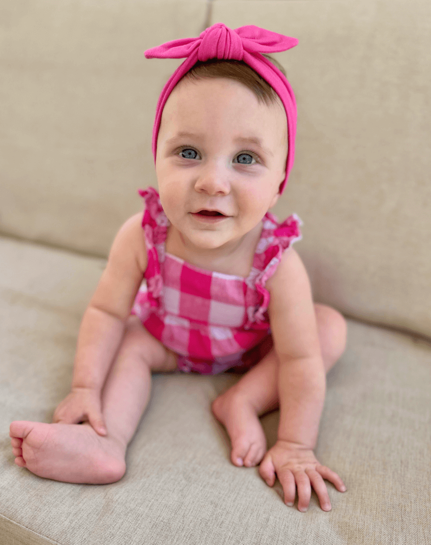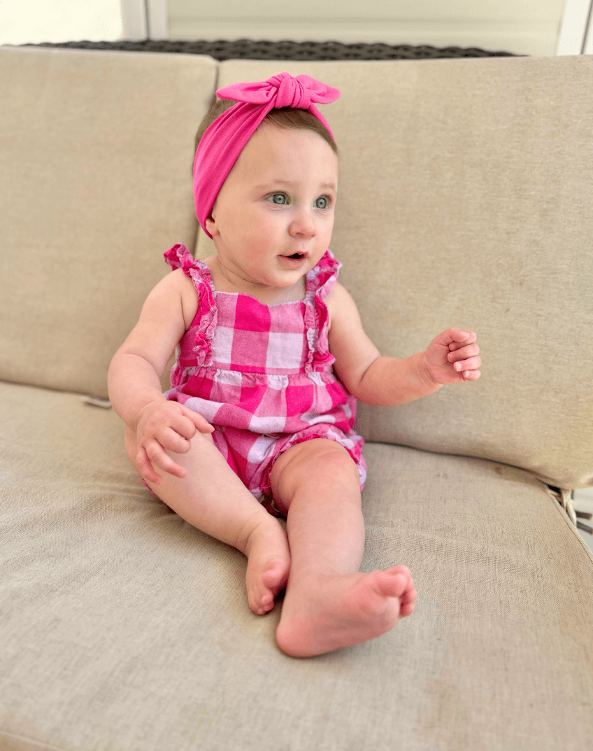 Our number one seller, the top knot headband appeals to everyone because of its simplicity. It is easy to dress up, or keep casual. From playground to downtime, this knotted headband will make your little girl more fashionable and more beautiful. Designed with busy mamas in mind, this stretchy and pre-tied headband allows for it to be slipped on easily, hassle-free. It's also perfect at keeping any hair that your baby might have out of their face.