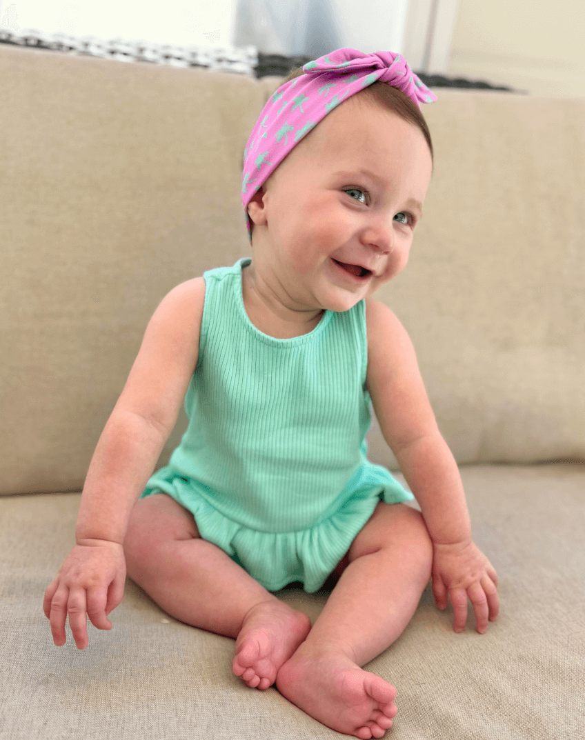 Each headband is handmade with buttery soft high quality fabric that is comfortable for even the most sensitive heads. Babies don't even feel that the headband is there!