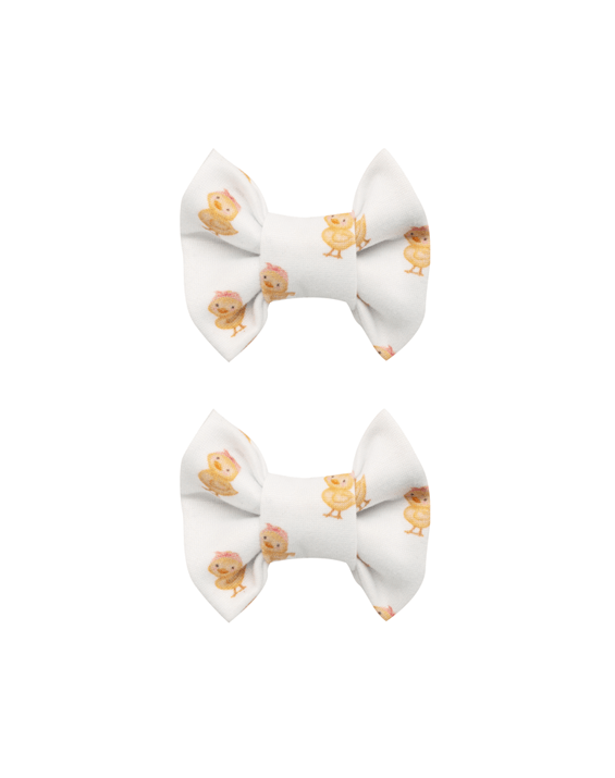 Designed with busy moms in mind, these Little Chick Bow Clips make it easy to pull her look together in seconds. The adorable chick print adds a soft, playful touch that makes any hairstyle feel instantly sweeter without being fussy.