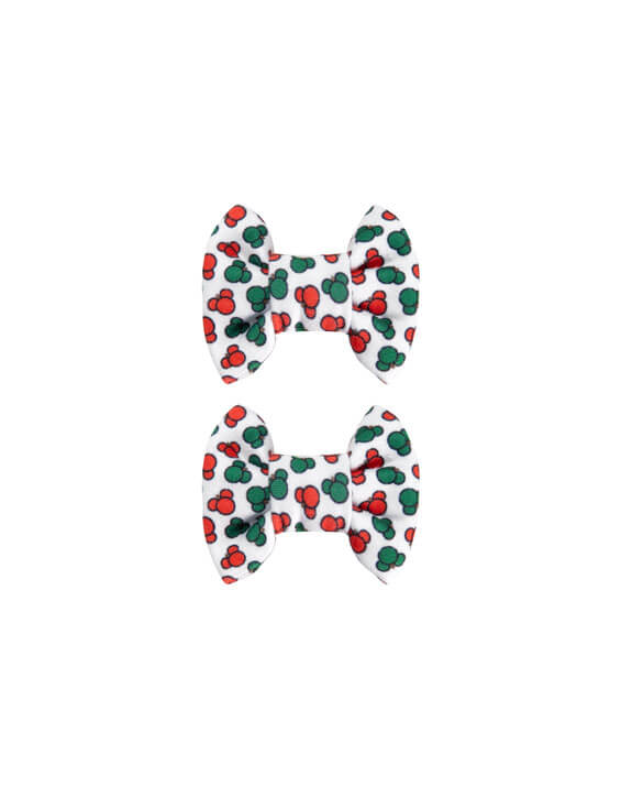 Imagine putting the final touch to your toddler's outfit with our Merry Mouse Ornaments Bow Clips handmade from buttery soft stretchy fabric.