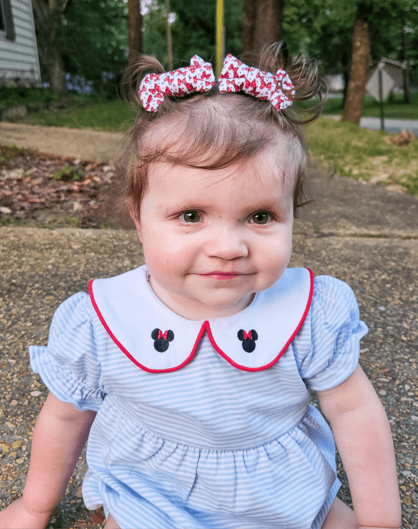 Imagine putting the final touch to your toddler's outfit with our Totally Minnie Bow Clips handmade from buttery soft stretchy fabric.