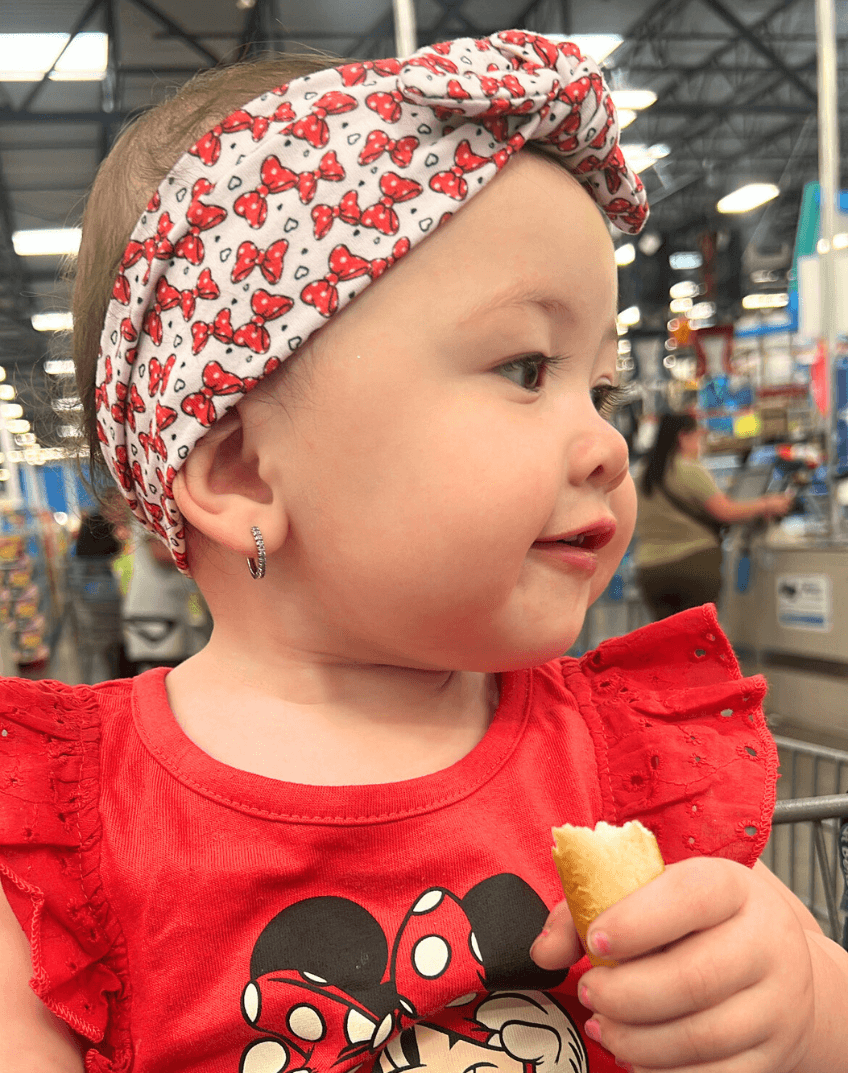 Our exclusively designed Totally Minnie print is easy to dress up, or keep casual. From playground to downtime, this knotted headband will make your little girl more fashionable and more beautiful. Designed with busy mamas in mind, this stretchy and pre-tied headband allows for it to be slipped on easily, hassle-free. It's also perfect at keeping any hair that your baby might have out of their face.