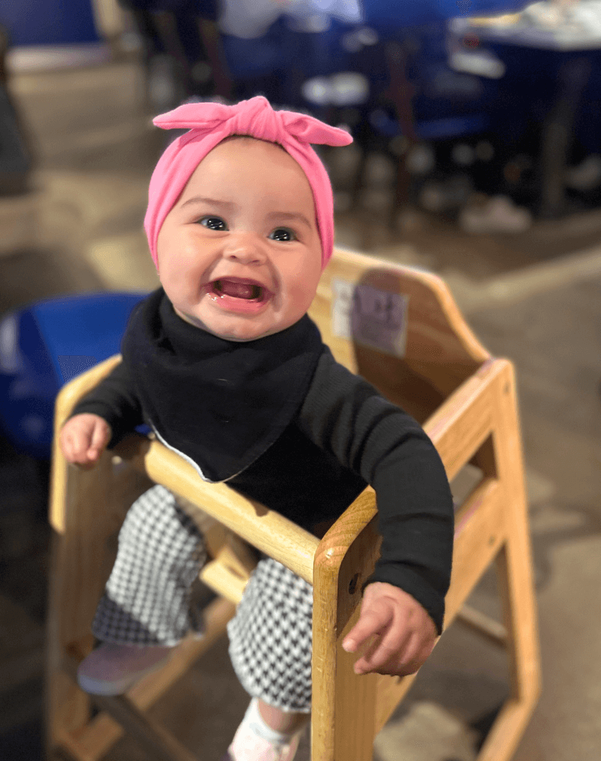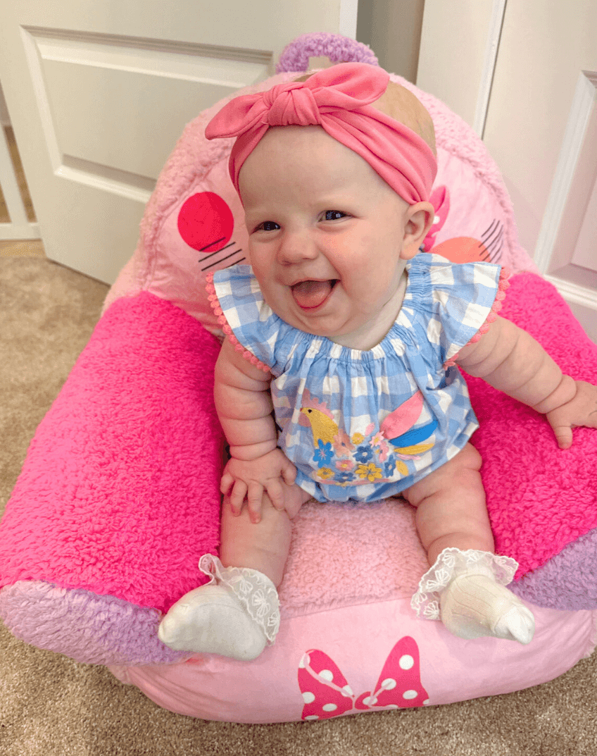 This is my favorite pink shade ever! It is so soft and buttery feeling and the pink shade is so stinking cute on my little girl. We are obsessed with it! Not to mention she doesn’t end up with a dent in her head from these bows like she does literally EVERY other bow she wears! 😍