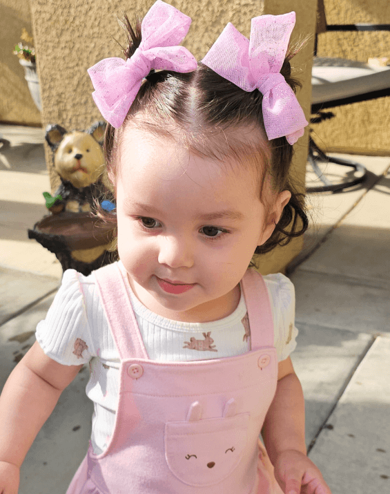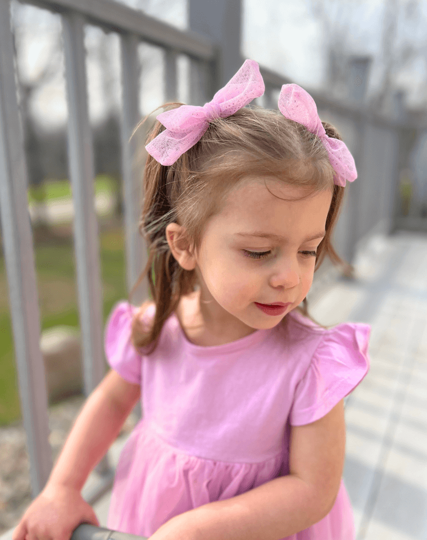Imagine putting the final touch to your toddler's outfit with our charming Pink Tulle tulle bow clips. Delicately crafted for your baby's comfort and style, this clip adds a touch of festive glamour to your little one's look.