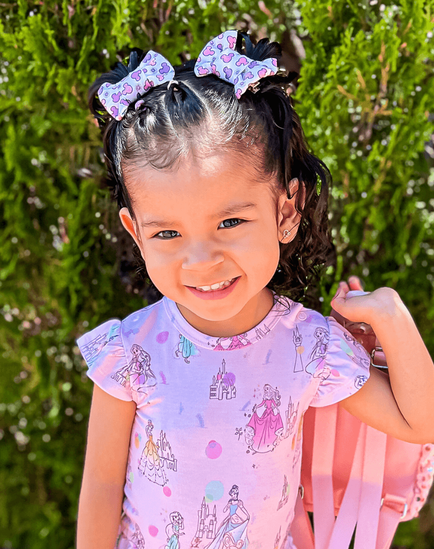 Imagine putting the final touch to your toddler's outfit with our Main Street Magic Bow Clips handmade from buttery soft stretchy fabric.