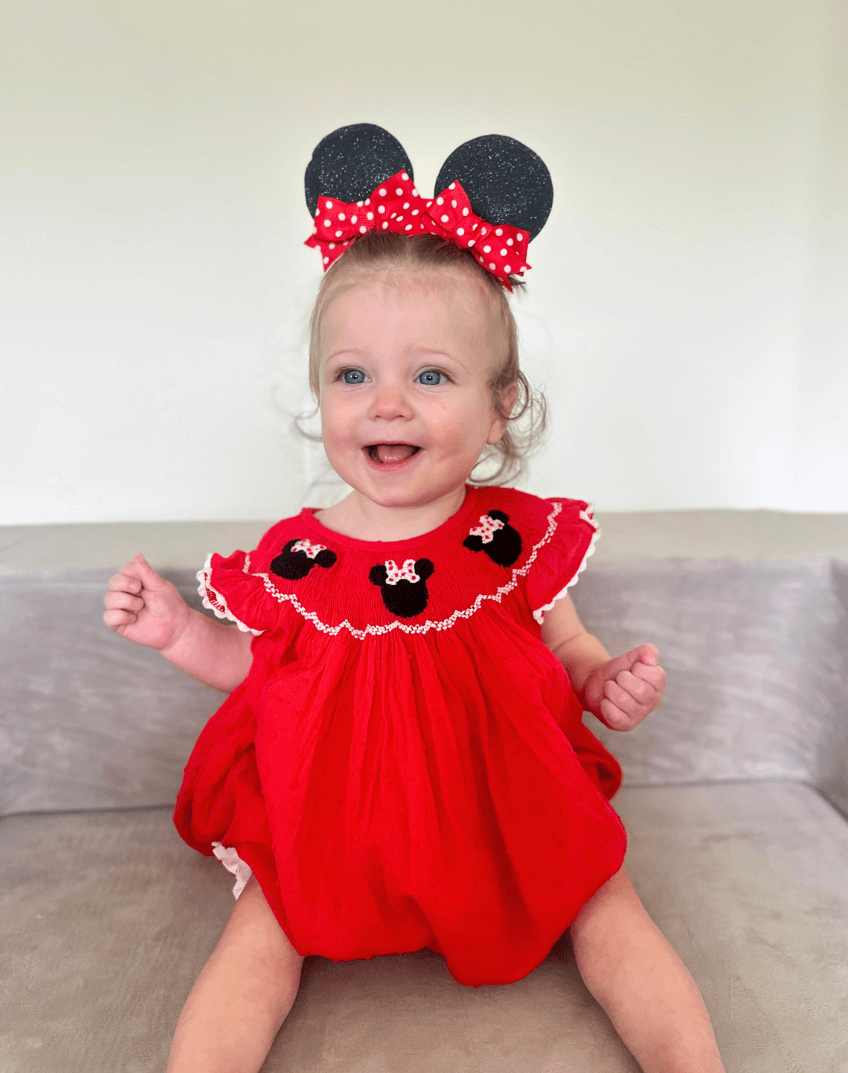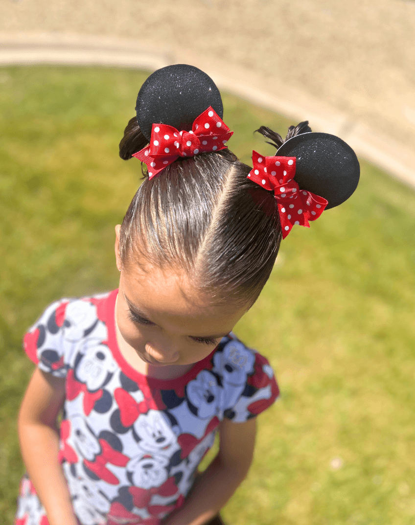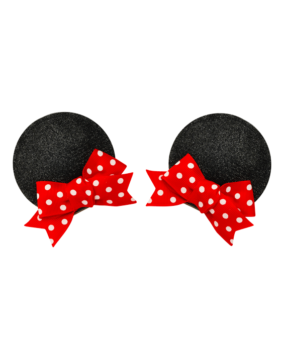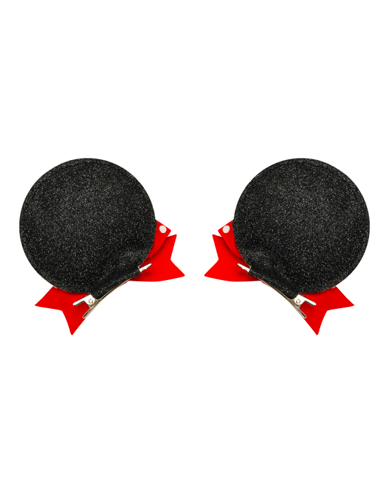 Bring a touch of Disney magic to your little one's outfit with our Red Mickey Ear Clips! Featuring sparkly black glitter mouse ears and the sweetest pink polka-dot grosgrain bows, these clips are perfect for playdates, theme park adventures, birthday parties, or just adding a dash of fun to everyday looks.