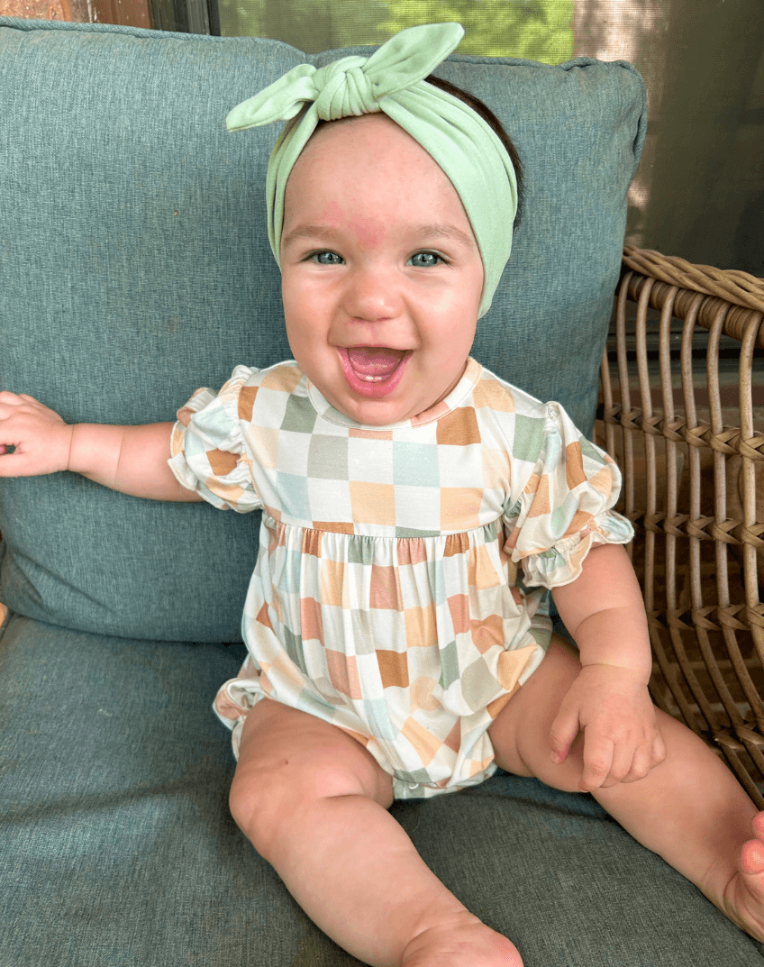 Our number one seller, the top knot headband appeals to everyone because of its simplicity. It is easy to dress up, or keep casual. From playground to downtime, this knotted headband will make your little girl more fashionable and more beautiful. Designed with busy mamas in mind, this stretchy and pre-tied headband allows for it to be slipped on easily, hassle-free. It's also perfect at keeping any hair that your baby might have out of their face.
