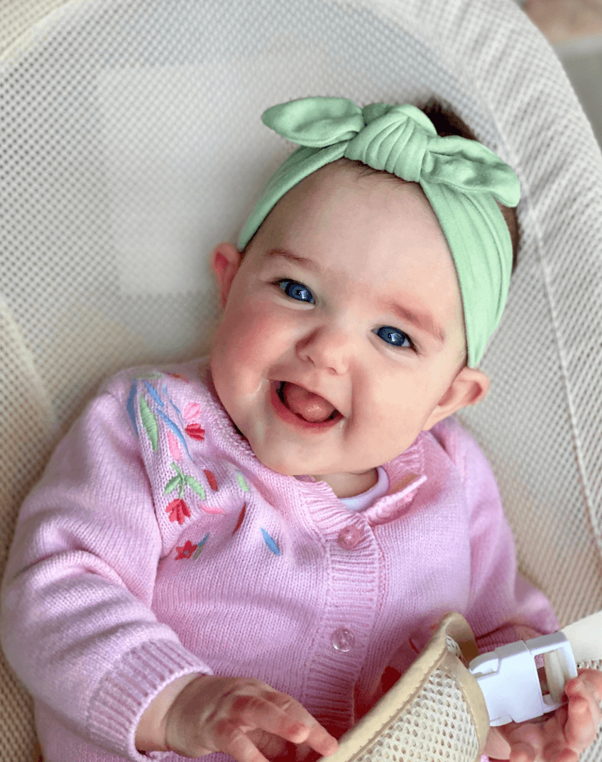Each headband is handmade with buttery soft high quality fabric that is comfortable for even the most sensitive heads. Babies don't even feel that the headband is there!