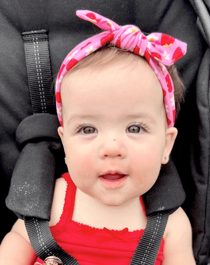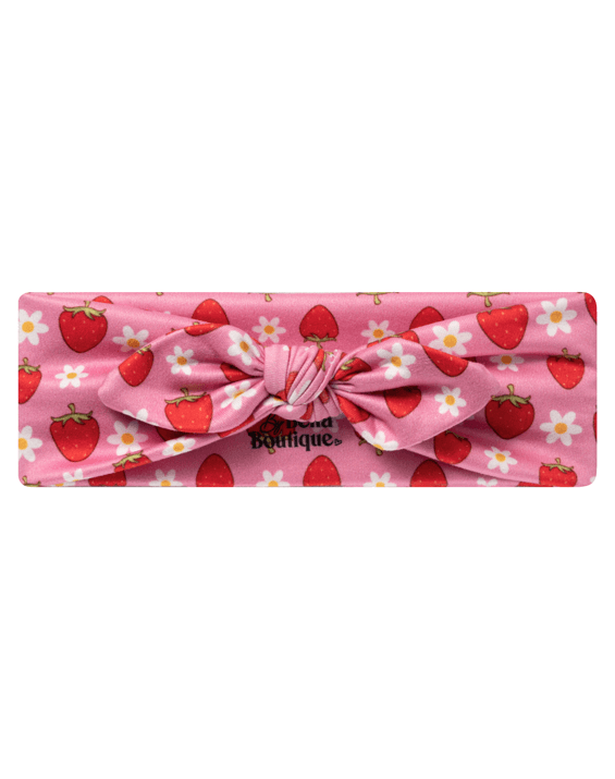 Our exclusively designed strawberry print headband is easy to dress up, or keep casual. From playground to downtime, this knotted headband will make your little girl more fashionable and more beautiful. Designed with busy mamas in mind, this stretchy and pre-tied headband allows for it to be slipped on easily, hassle-free. It's also perfect at keeping any hair that your baby might have out of their face.